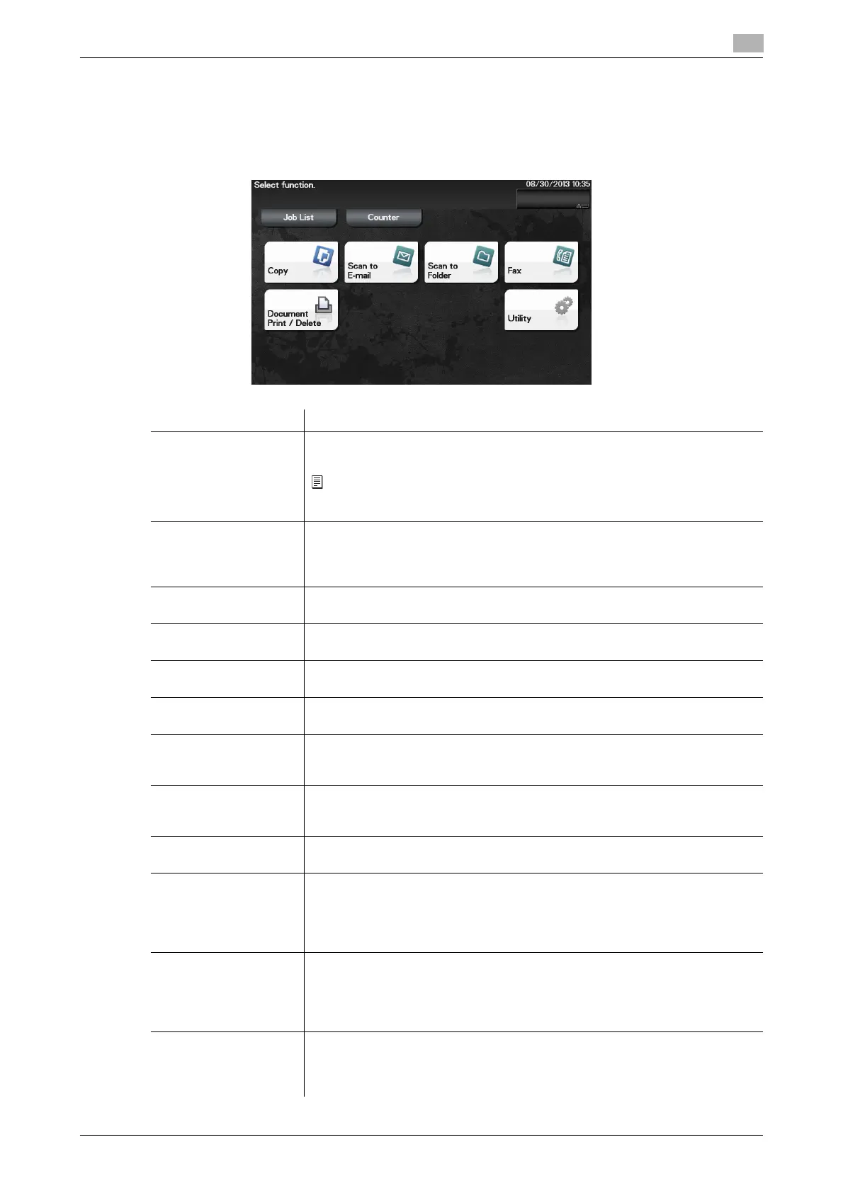 [Job List] Tap this button to check active jobs or job logs. If necessary, you can perform