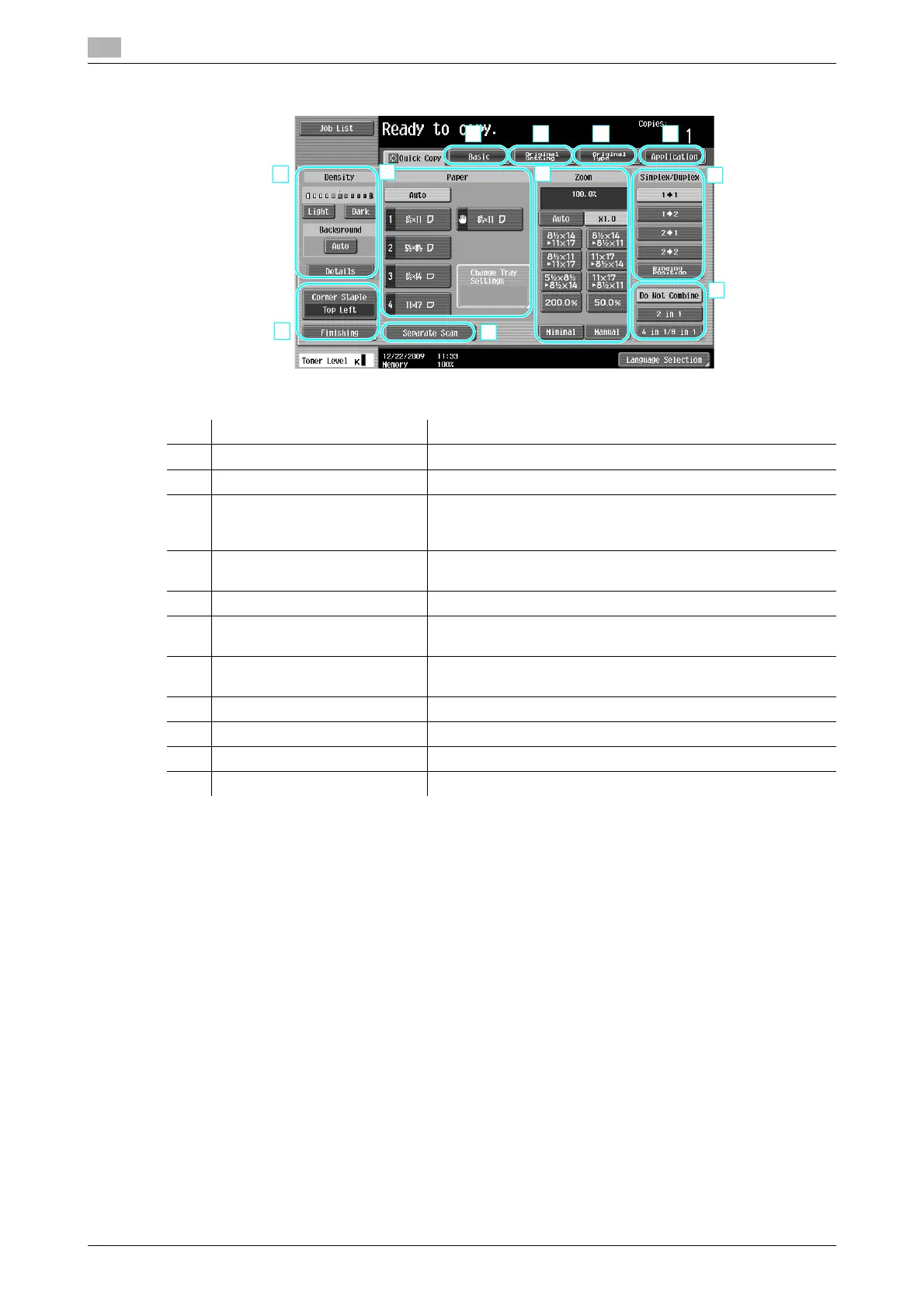 4 Simplex/Duplex settings Select whether the document and copy is single-sided or dou-