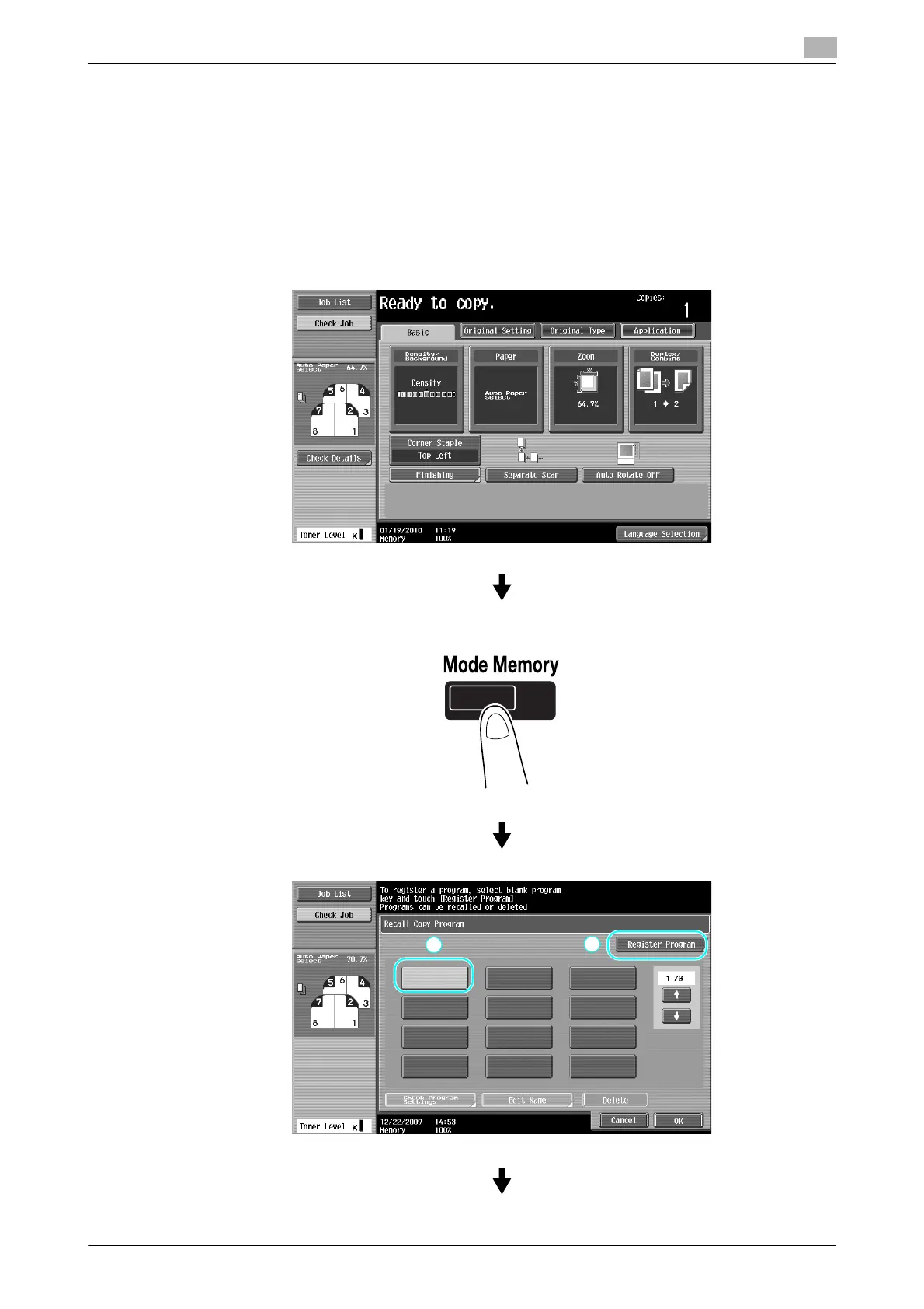 Frequently used functions can be registered as a copy program. The registered copy program can easily be