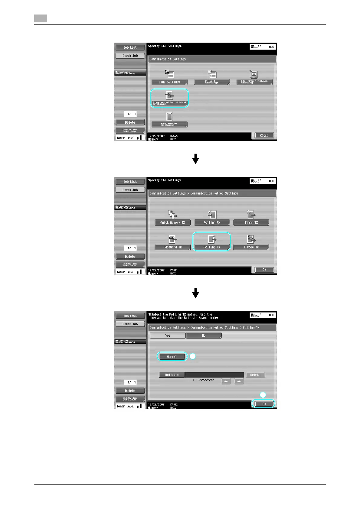 - Bulletin polling transmission can be used if the recipient’s fax machine supports F-code functions.