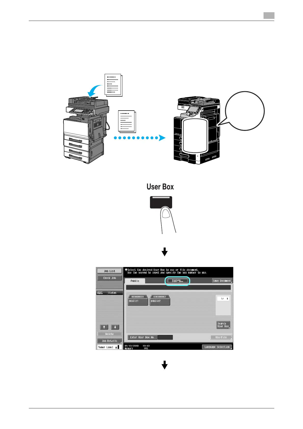 Received faxes can be saved in user box as data and printed when they are needed.