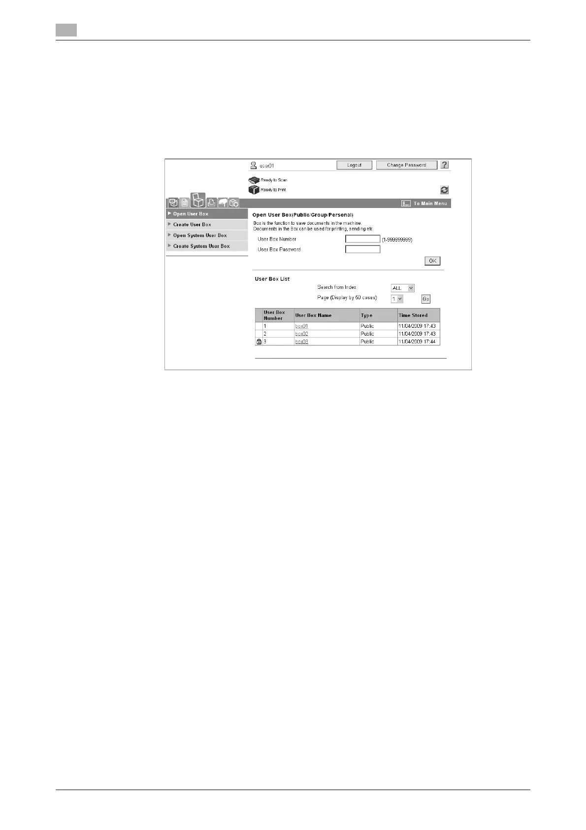 The following operations can be performed from the Box tab of Web Connection.