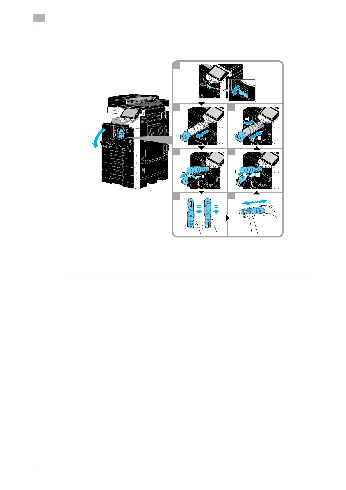 Before installing the new toner bottle, shake it up and down five to ten times.