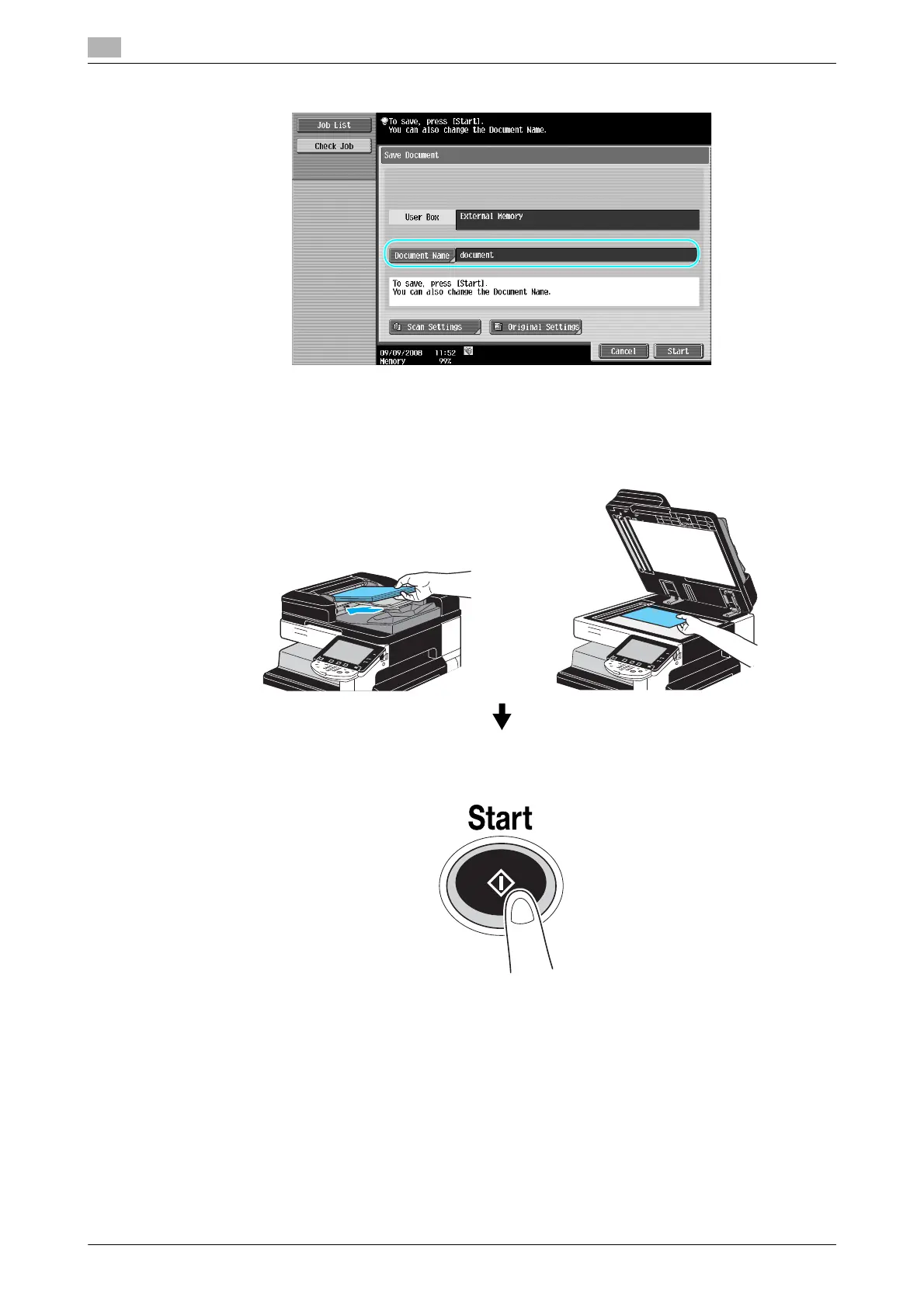 scan or original settings when saving a document, refer to chapter 6 in the [User's Guide Box