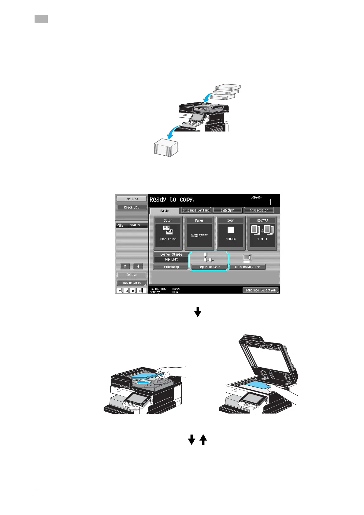 divided into batches, which are scanned separately. After all document pages are scanned, the copies can