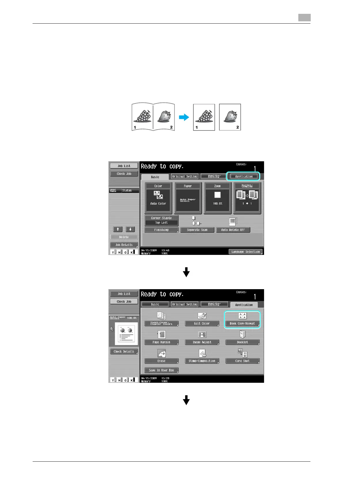 Develop ineo+ 220 - Copying Book Page Spreads on Separate Sheets of Paper; Book Copy