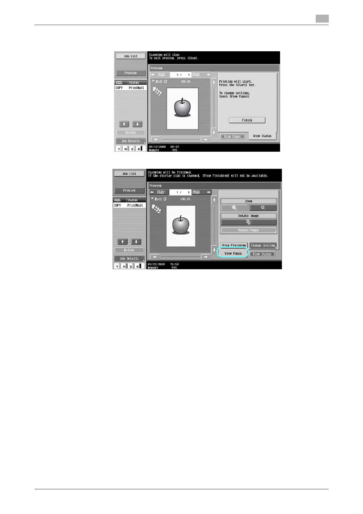 - To change the settings after checking the preview image, press [View Pages], and then change the