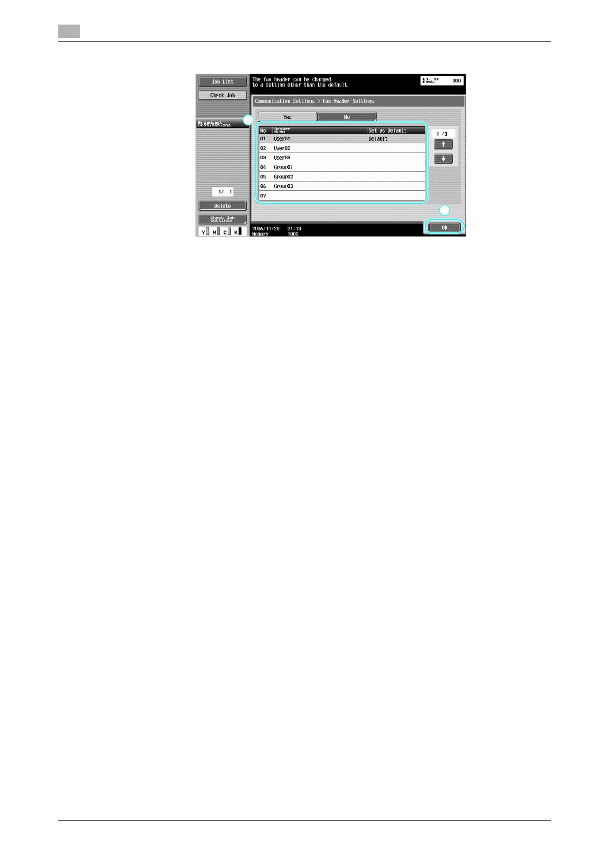 - The transmission source information is registered by the administrator. Check with the machine’s