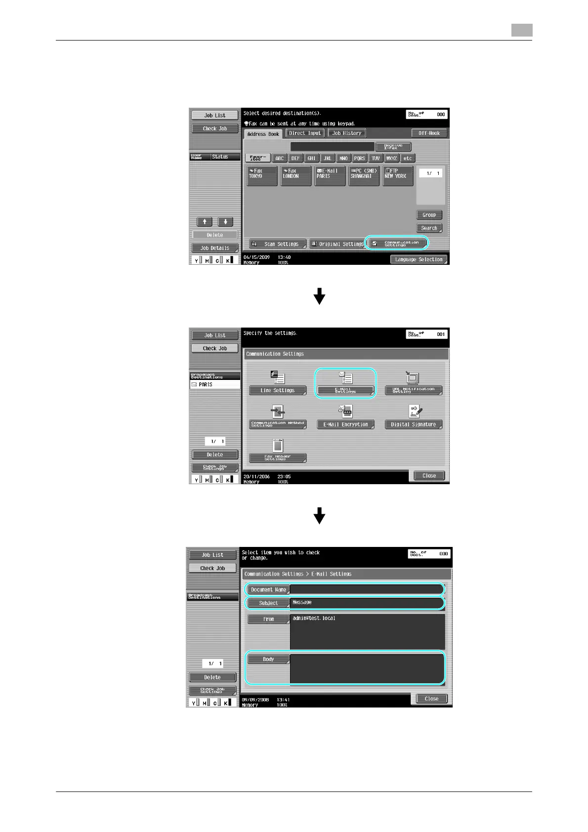 The subject of the e-mail message and the file name can be changed when sending scan data by e-mail.