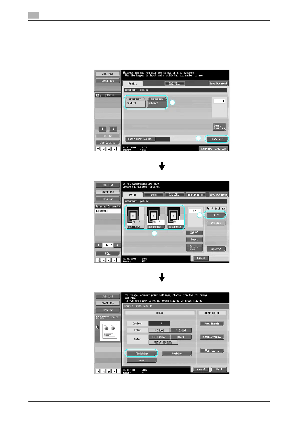 Before printing data saved in a user box, the finishing settings can be changed.