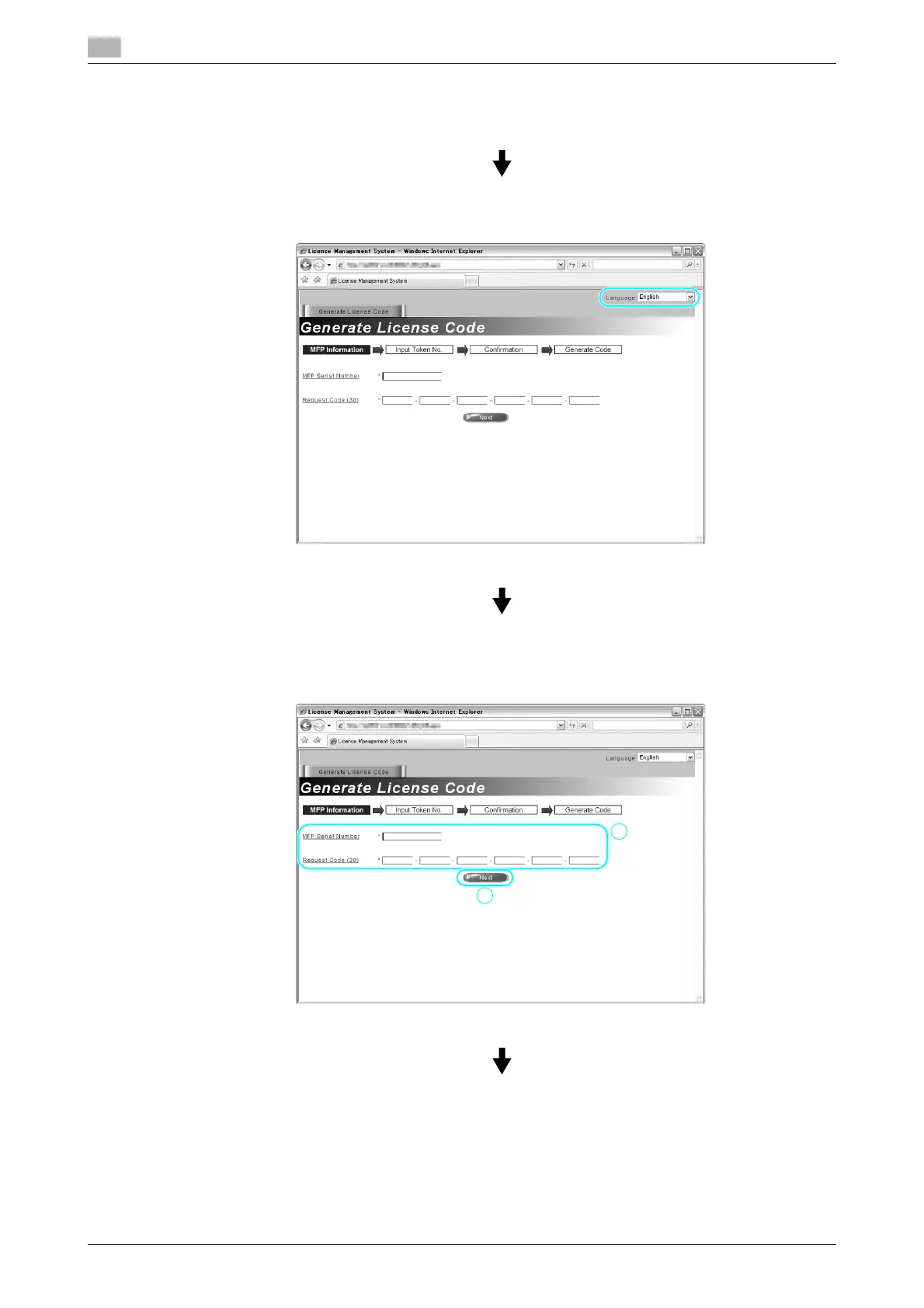 % Type in the serial number and request code displayed by issuing a request code, and then click the