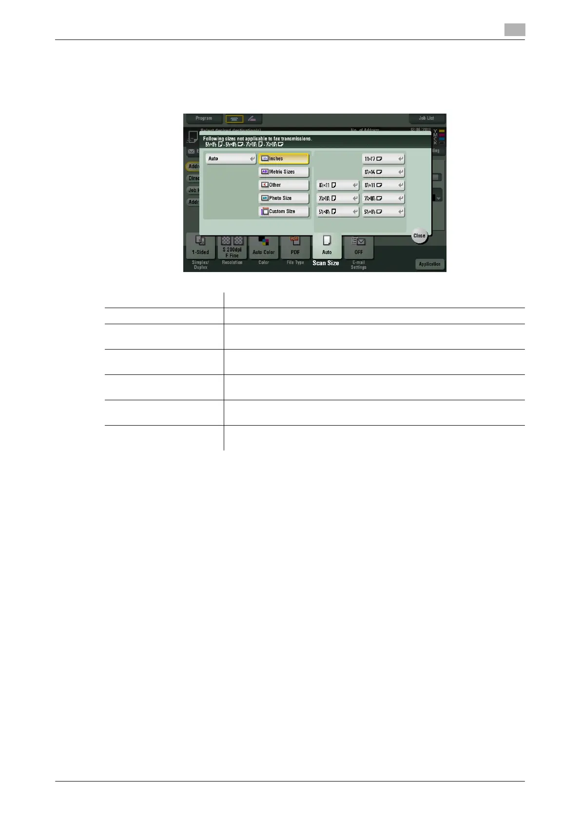 [Metric Sizes] Select this option to scan a metric-size original. Tap [Metric Sizes], and se-
