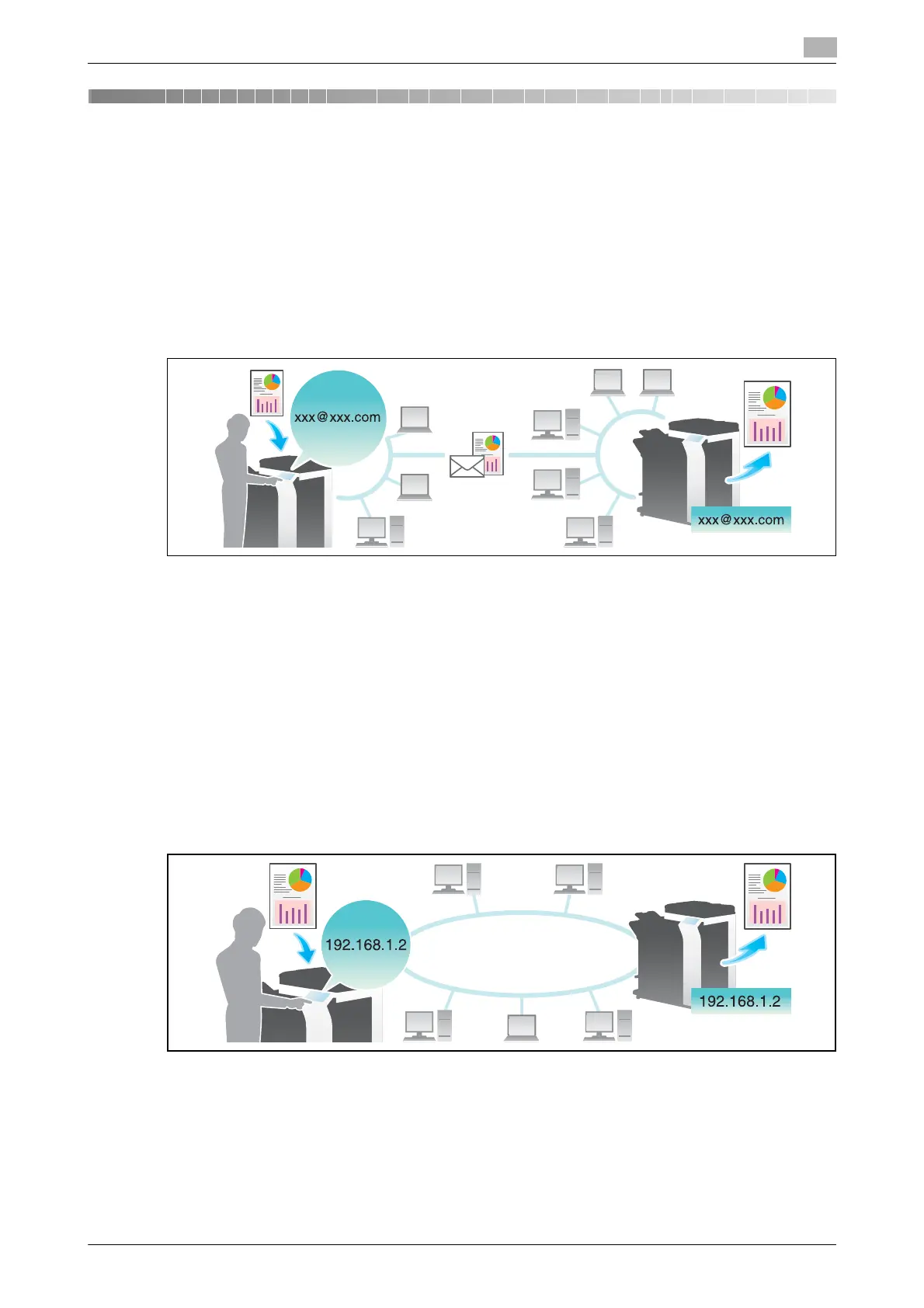 Internet fax is a function used to send and receive fax via enterprise network and Internet.
