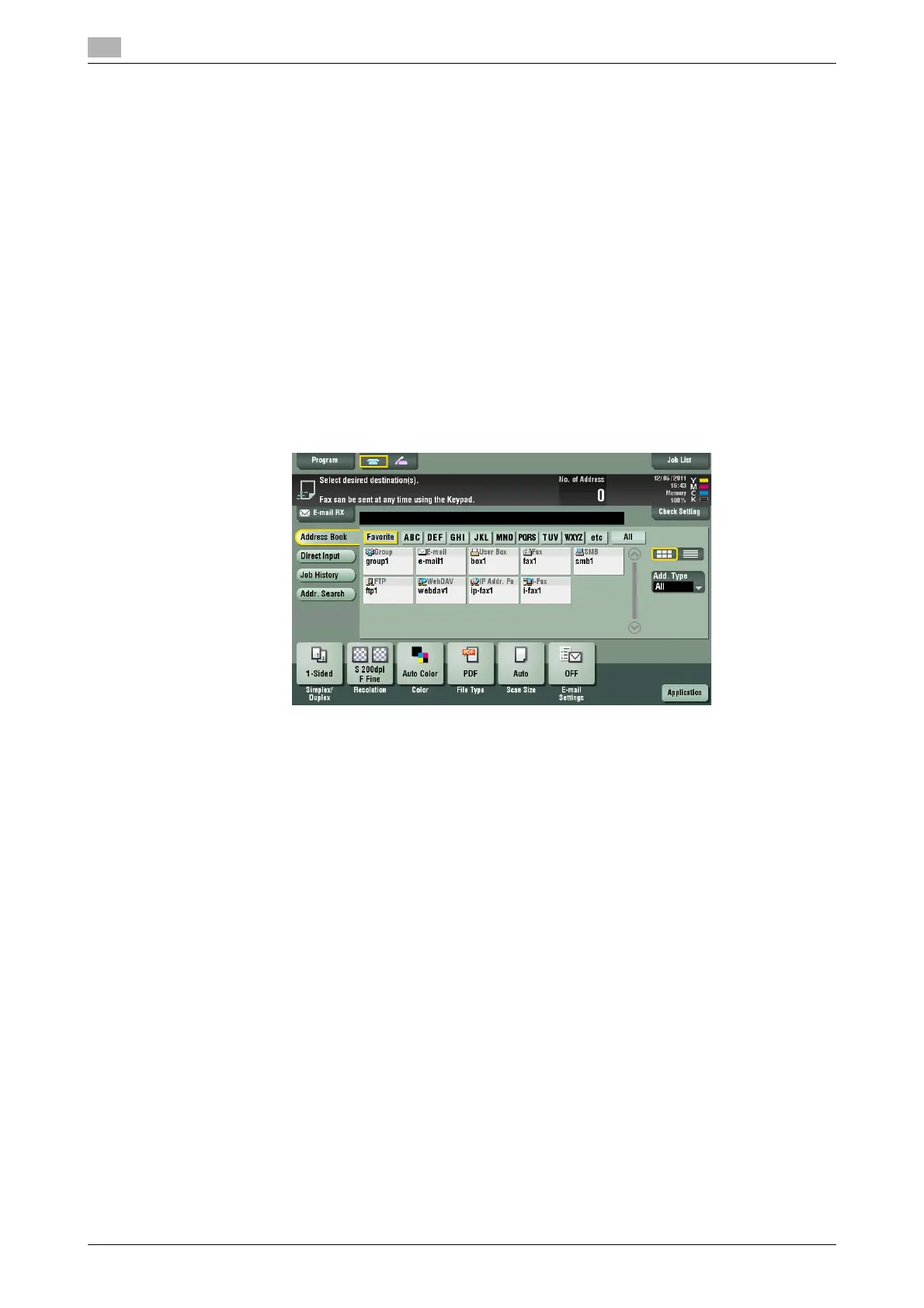 Tap [E-mail RX] to inquire the mail server, and receive and print any fax receipt message.