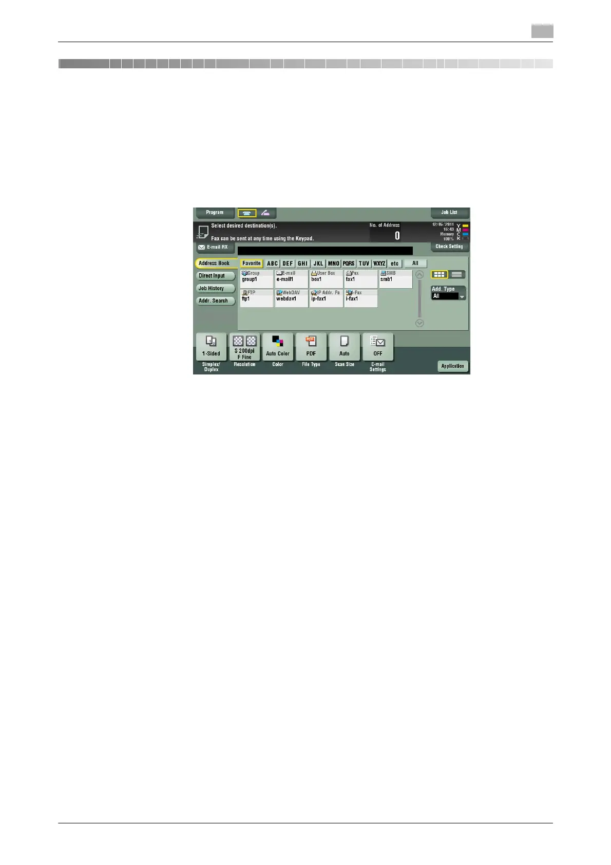 Select a destination registered on this machine. You can send data by broadcast transmission if you select