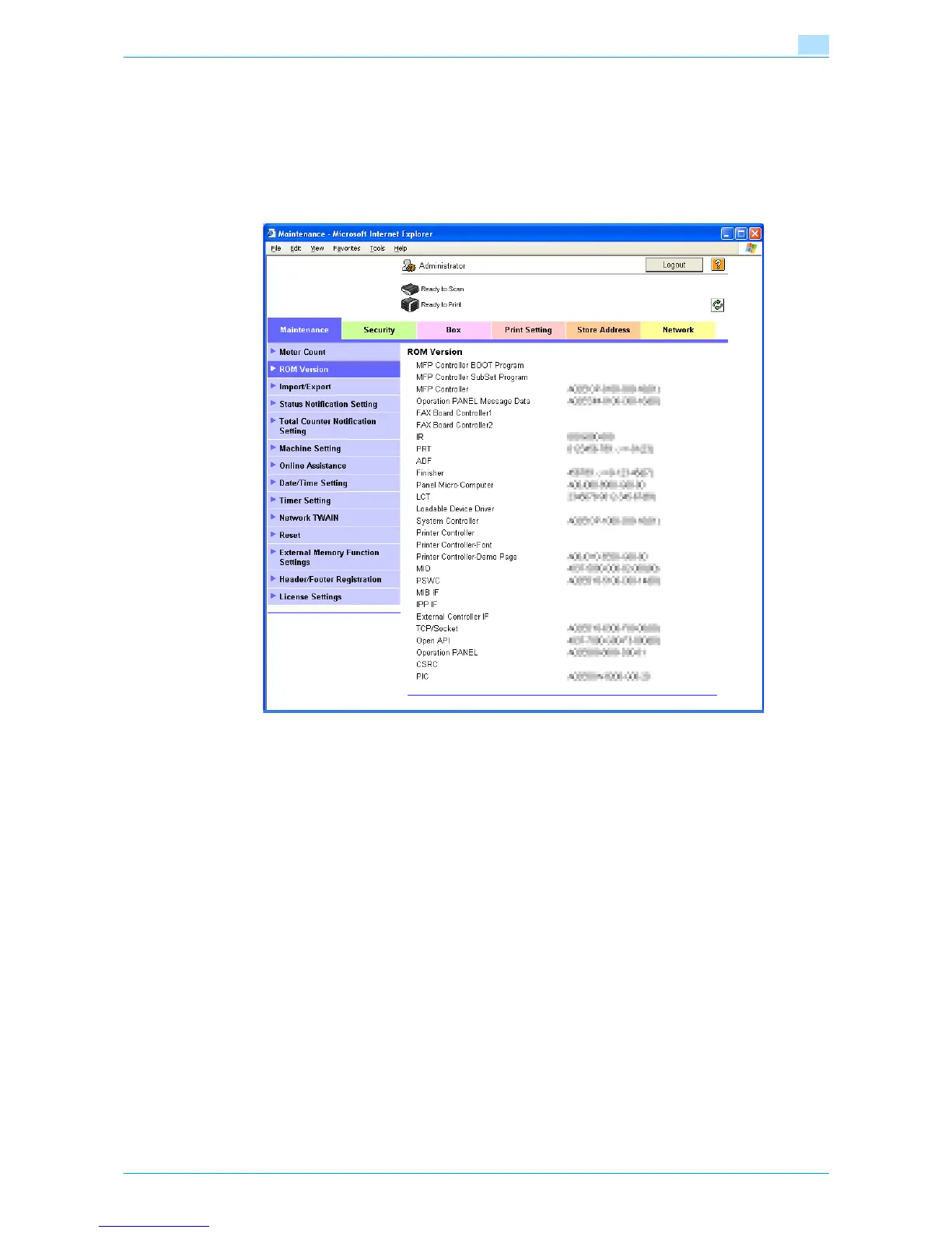 In Administrator mode of Web Connection, select the Maintenance tab - ROM Version.
