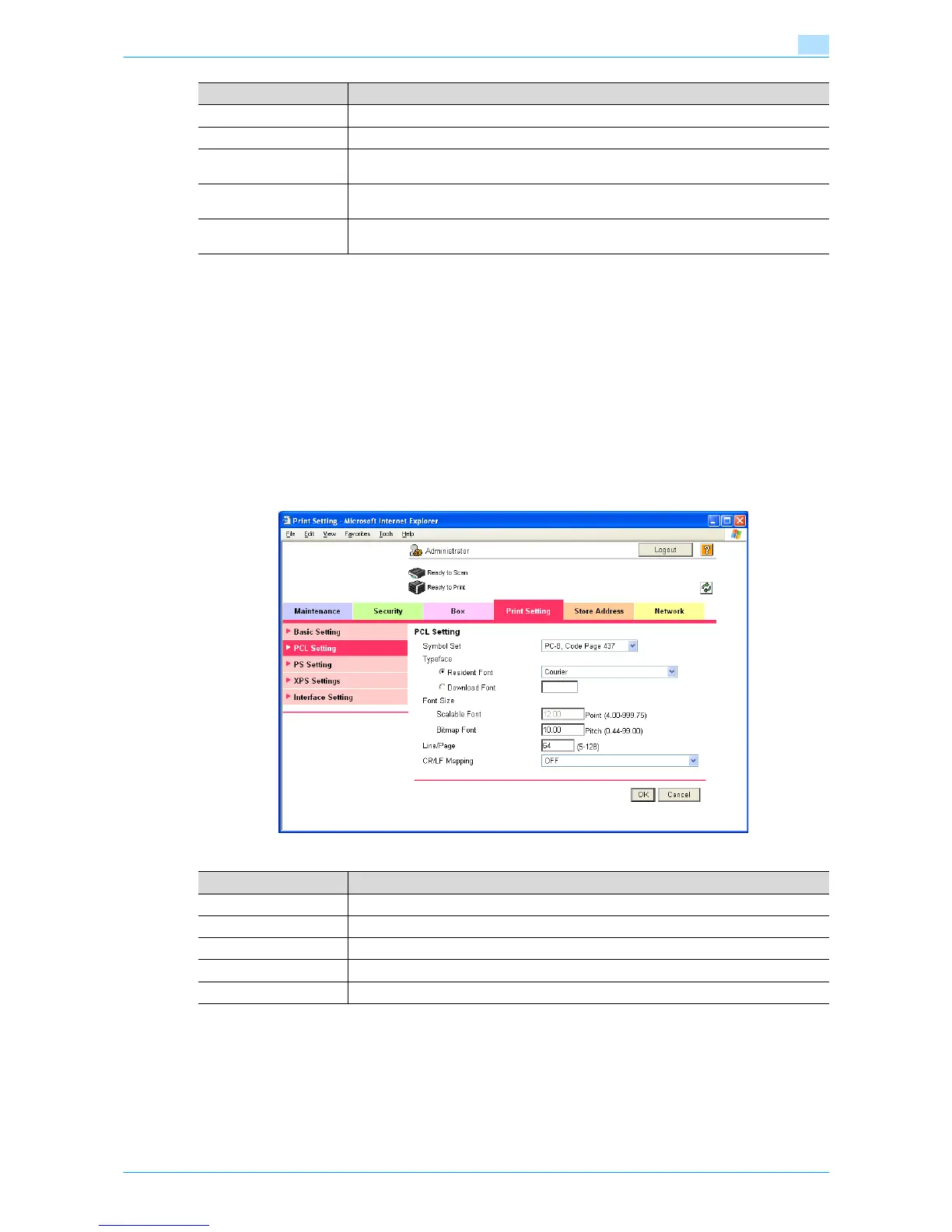 In Administrator mode of Web Connection, select the Print Setting tab - "PCL Setting".