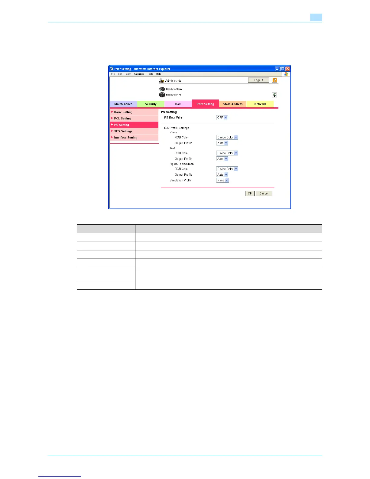 In Administrator mode of Web Connection, select the Print Setting tab - "PS Setting".