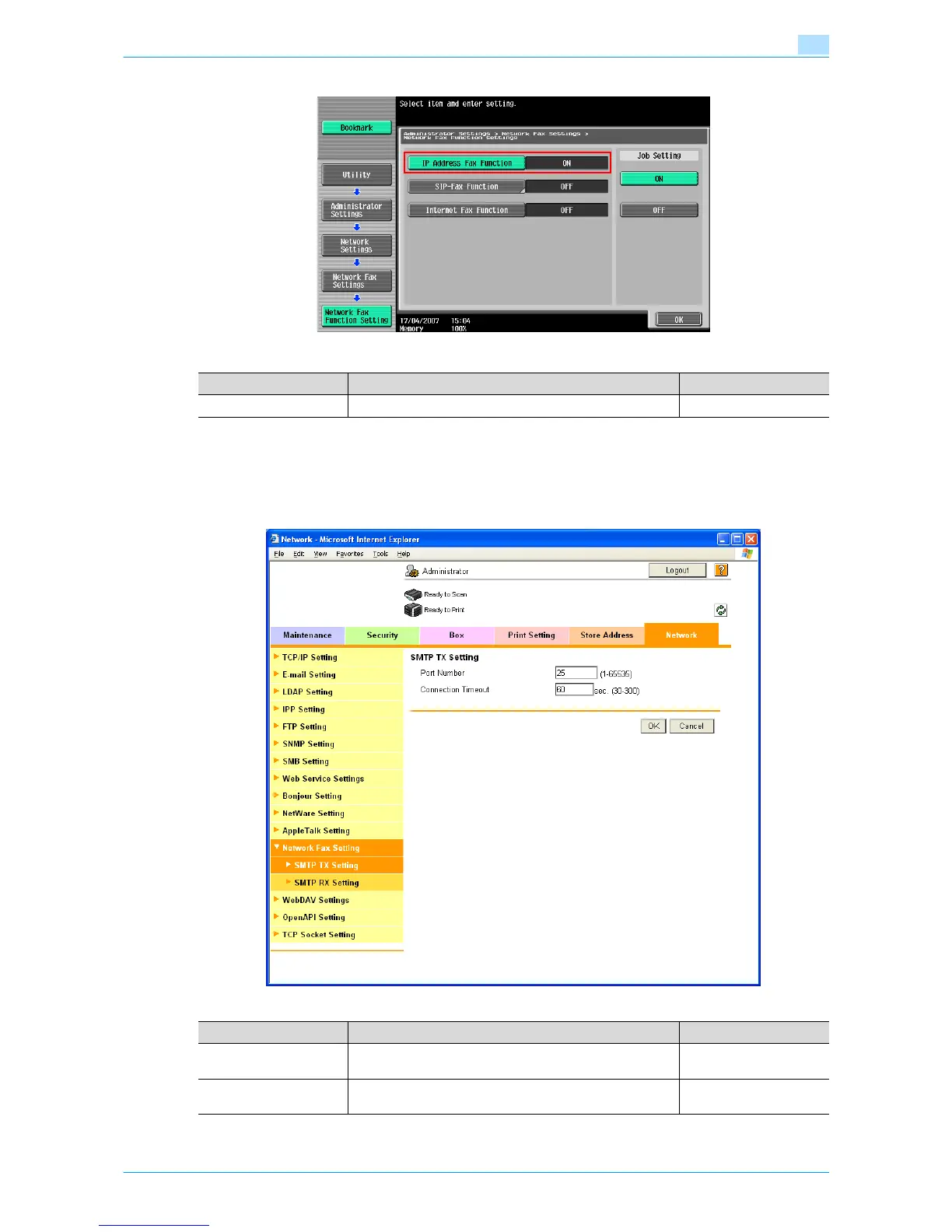 In Administrator mode of Web Connection, select the Network tab - "Network Fax Setting" - "SMTP TX
