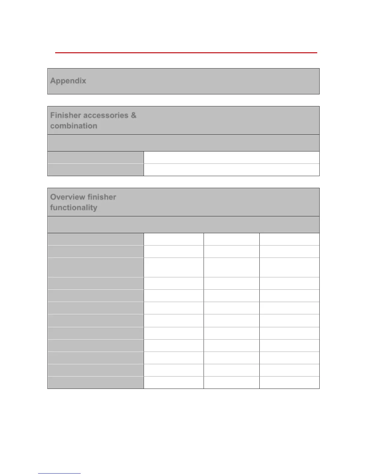 Develop ineo+ 258 - Appendix; Finisher accessories & combination; Overview finisher functionality