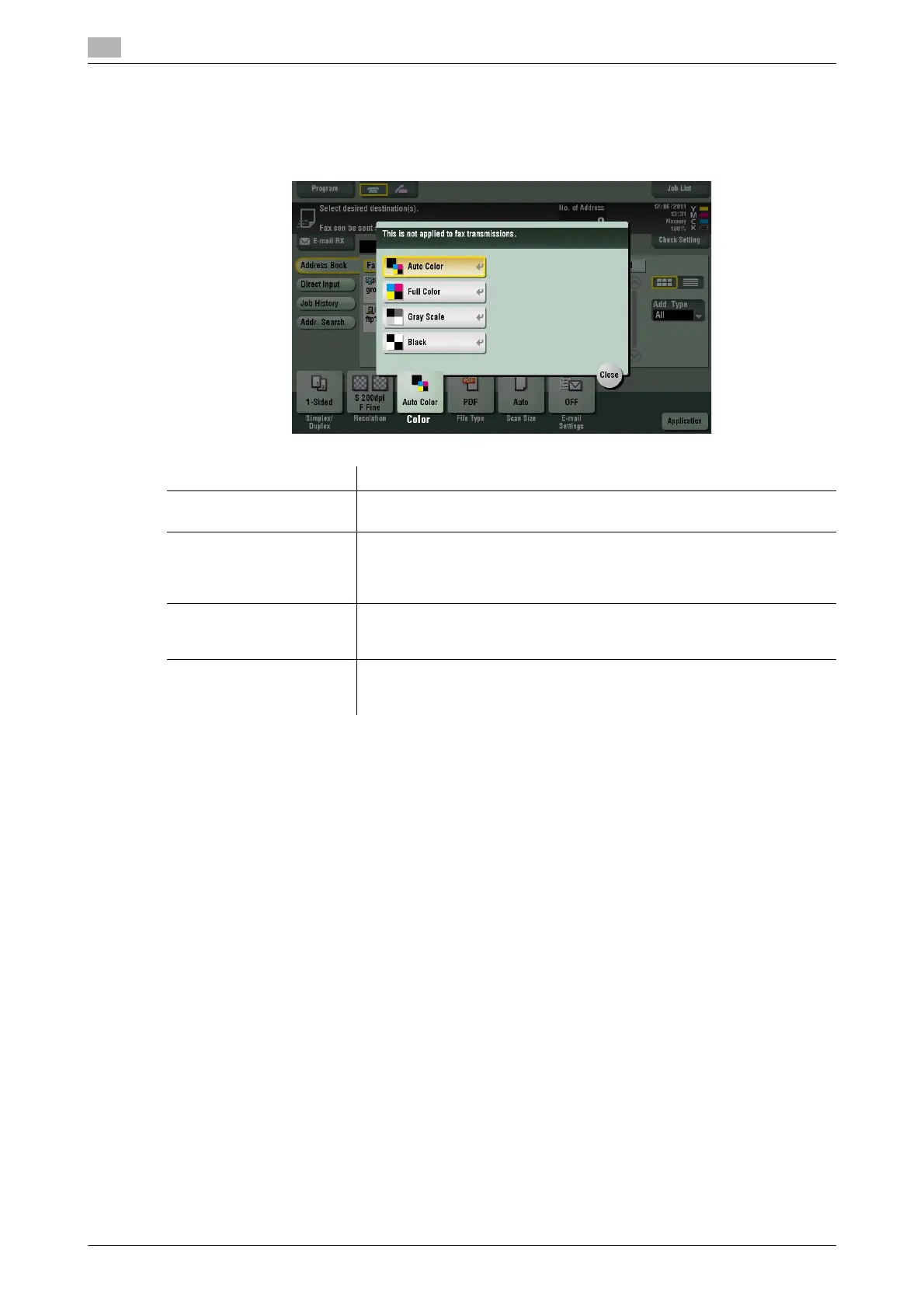 [Auto Color] Scan by automatically selecting either [Full Color] or [Gray Scale] accord-