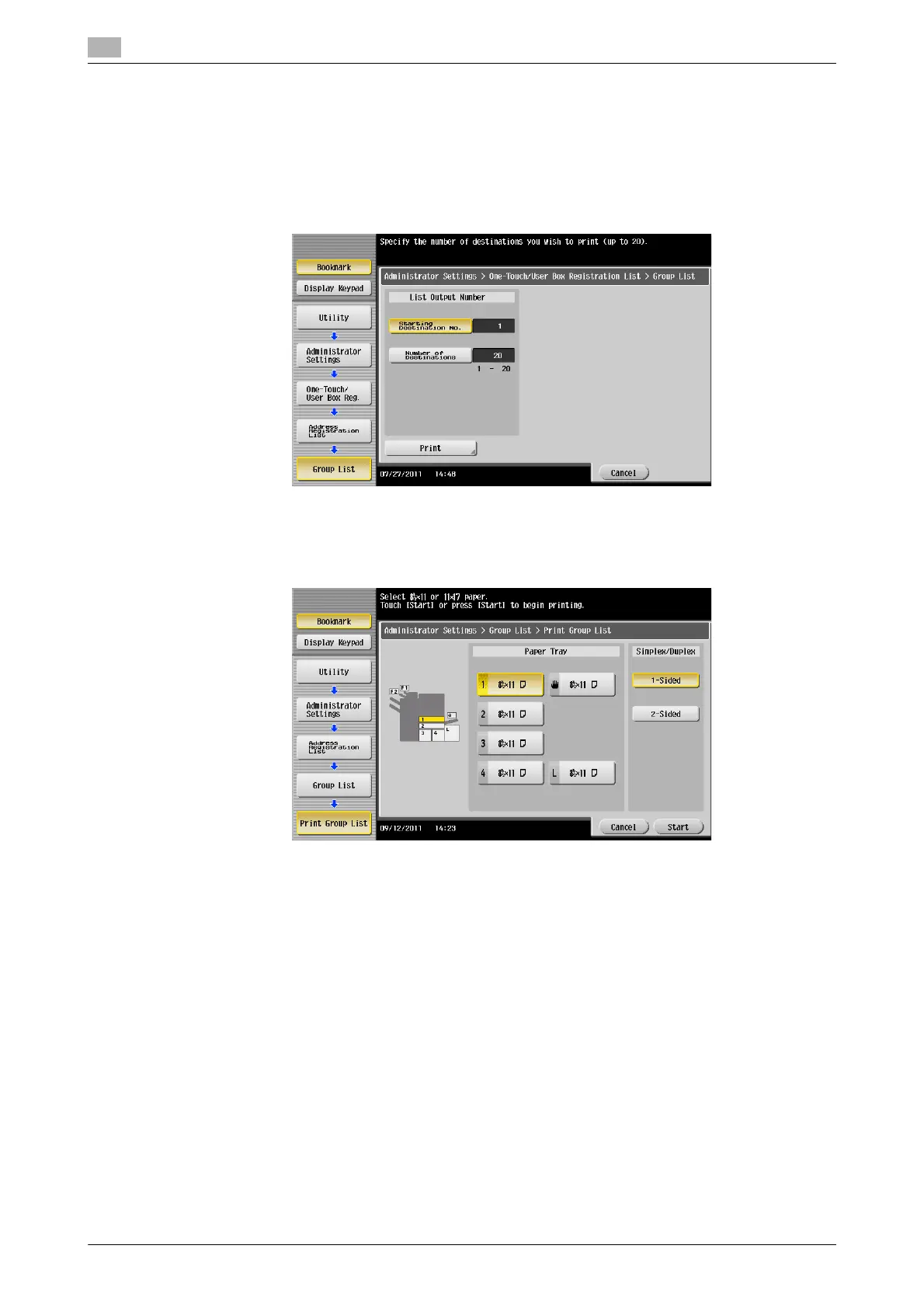 2 Specify the print range in [Starting Destination No.] (destination registration number) and [Number of