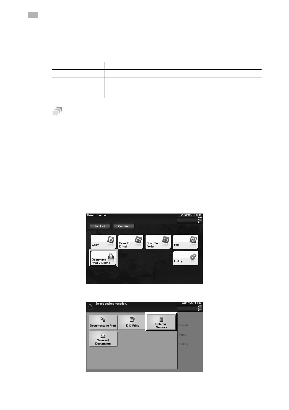 - Use only a USB memory device on this machine. Do not use other USB devices (such as a hard disk