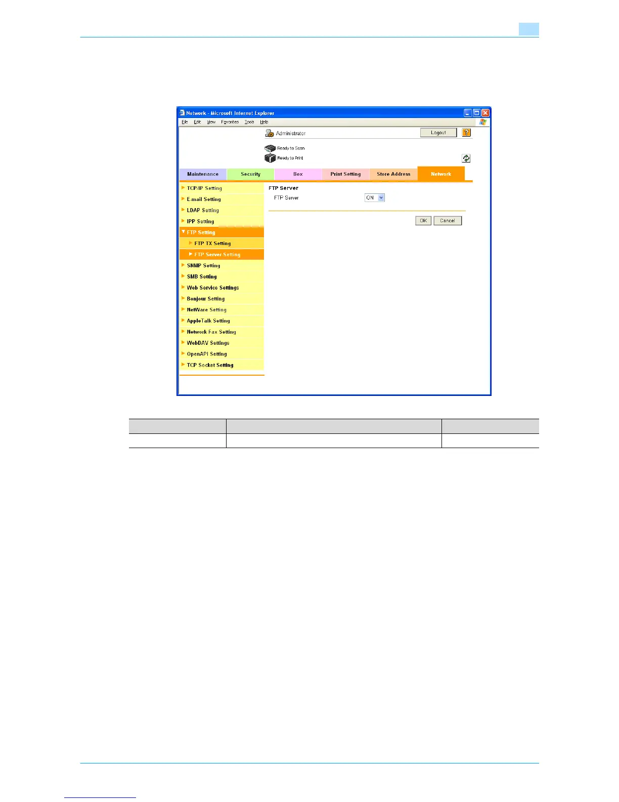 In Administrator mode of Web Connection, select the Network tab - "FTP Setting" - "FTP Server Setting".