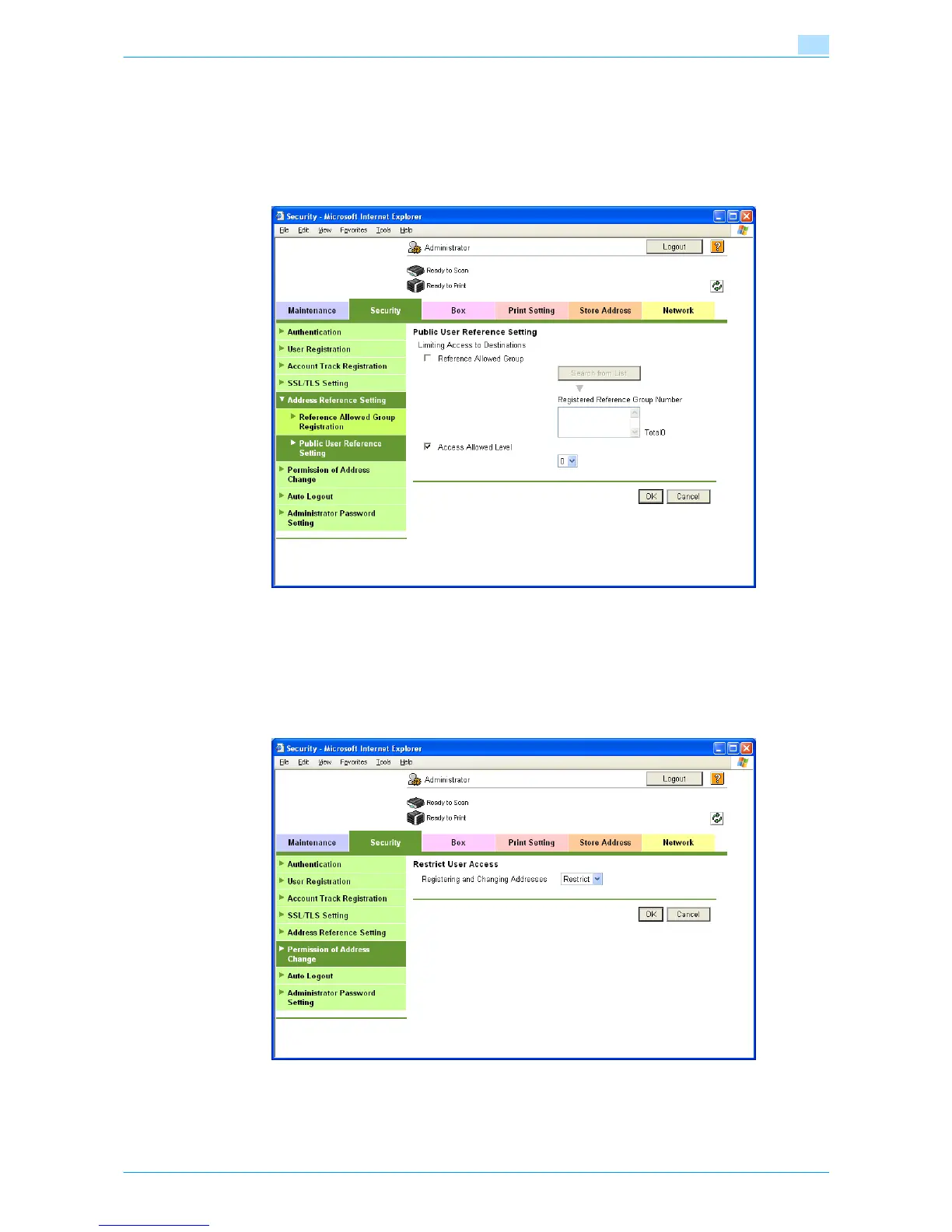 In Administrator mode of Web Connection, select the Security tab - "Address Reference Setting" - "Public