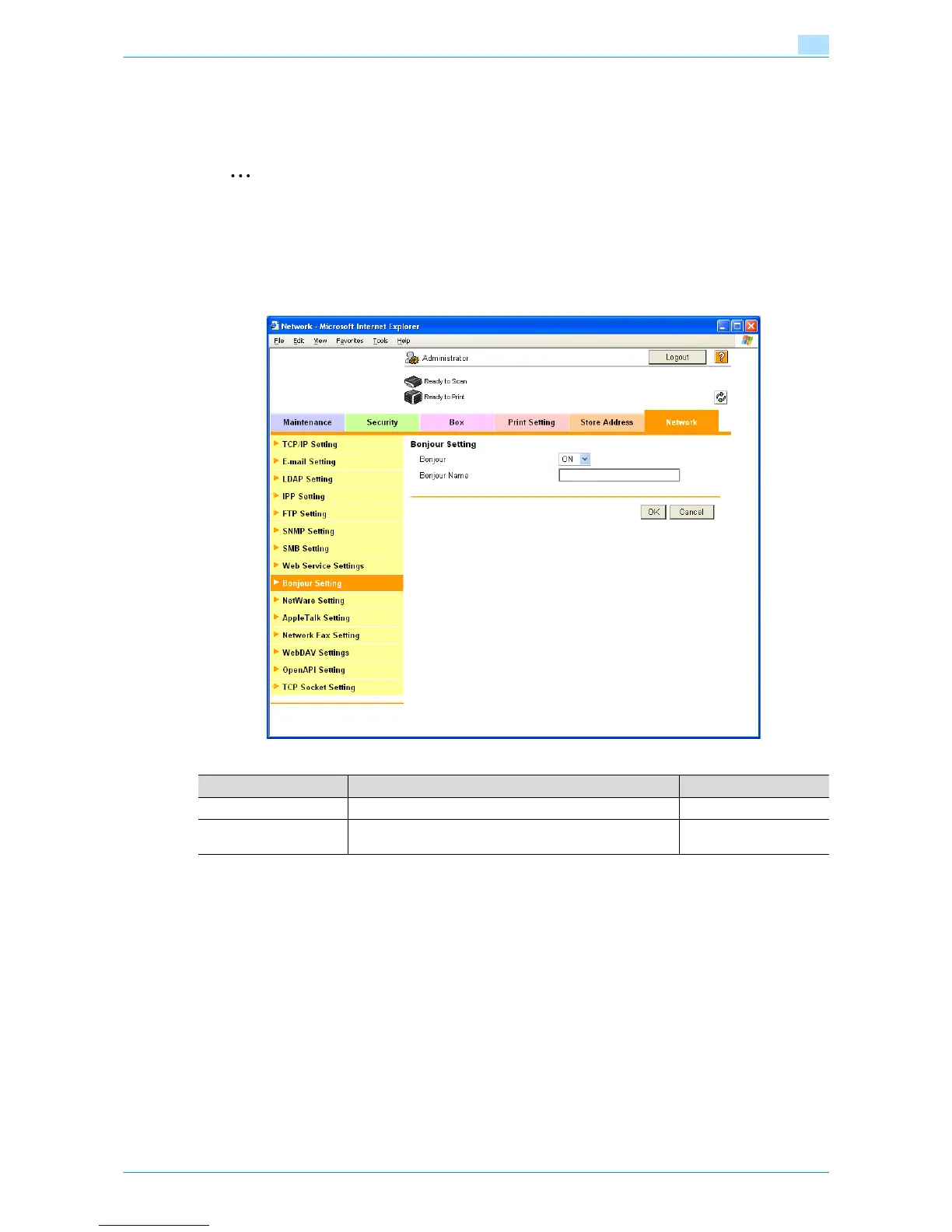 connecting this machine to a Macintosh computer using Bonjour, the Bonjour settings must be specified.
