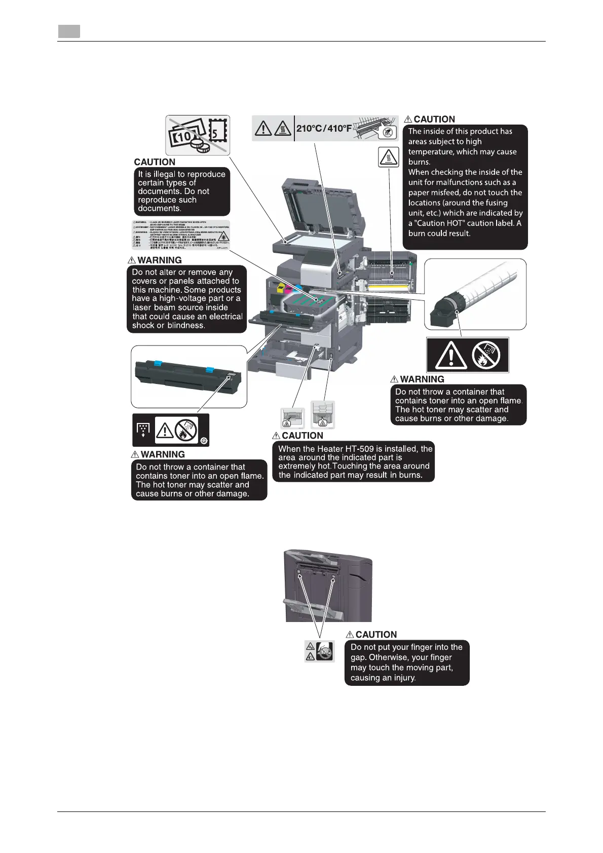 Do not remove caution labels or notations. If any caution label or caution notation is soiled, please clean to