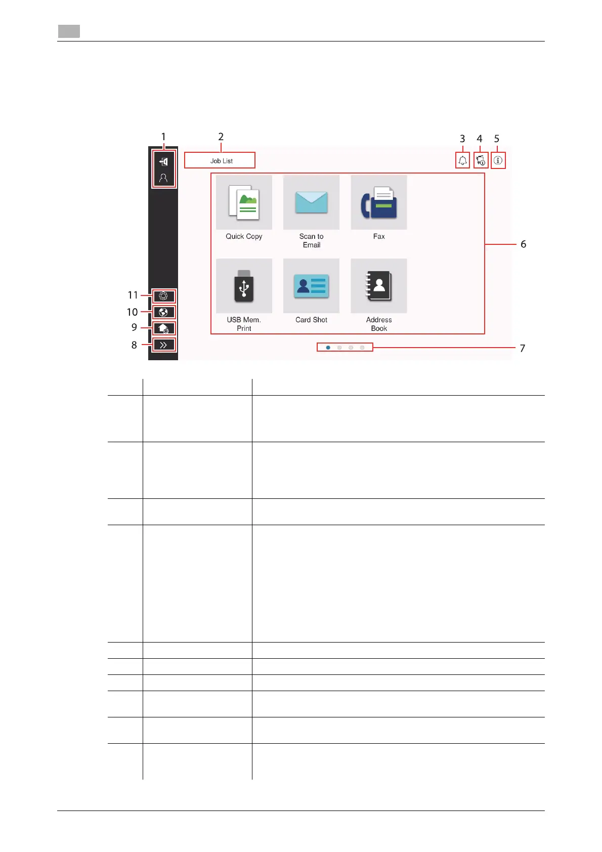 2 [Job List] Displays active or standby jobs. If necessary, you can check job logs