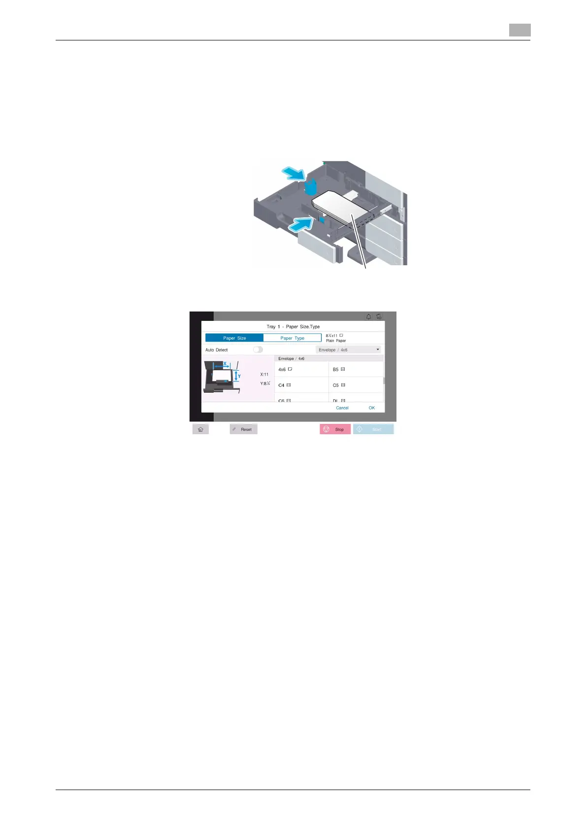 - Select the desired envelope size from [Envelop/4 e 6] ([Envelop/A6 Card]) of [Paper Size].