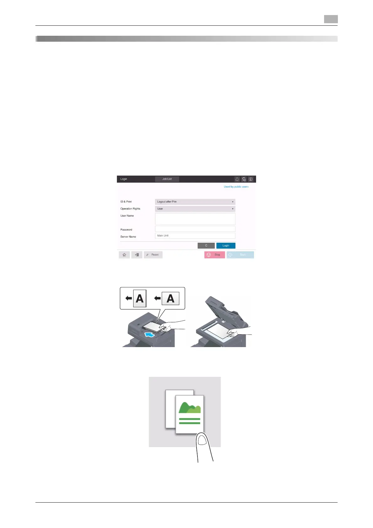 If user authentication is enabled, the login screen appears. Enter the required items, and tap [Login].