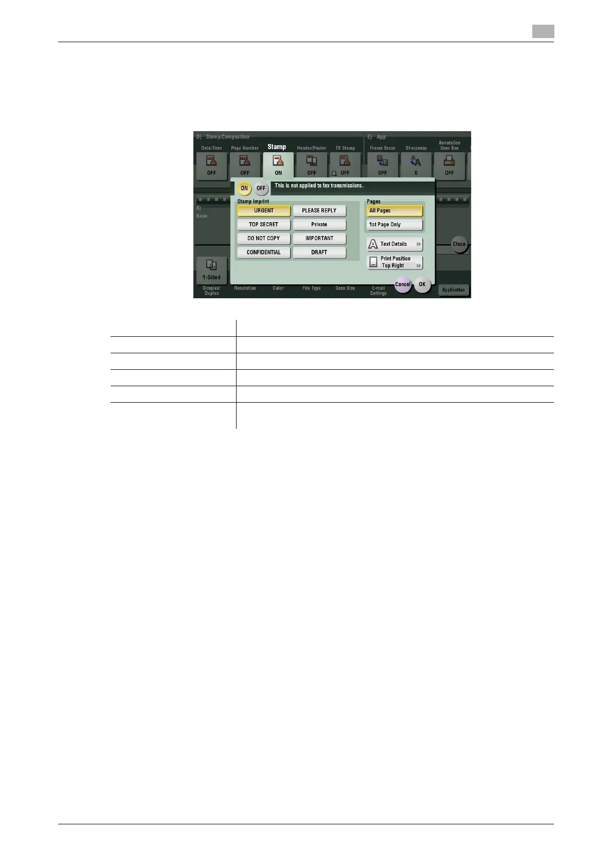 To display: [Scan/Fax] - [Application] - [Stamp/Composition] - [Stamp]