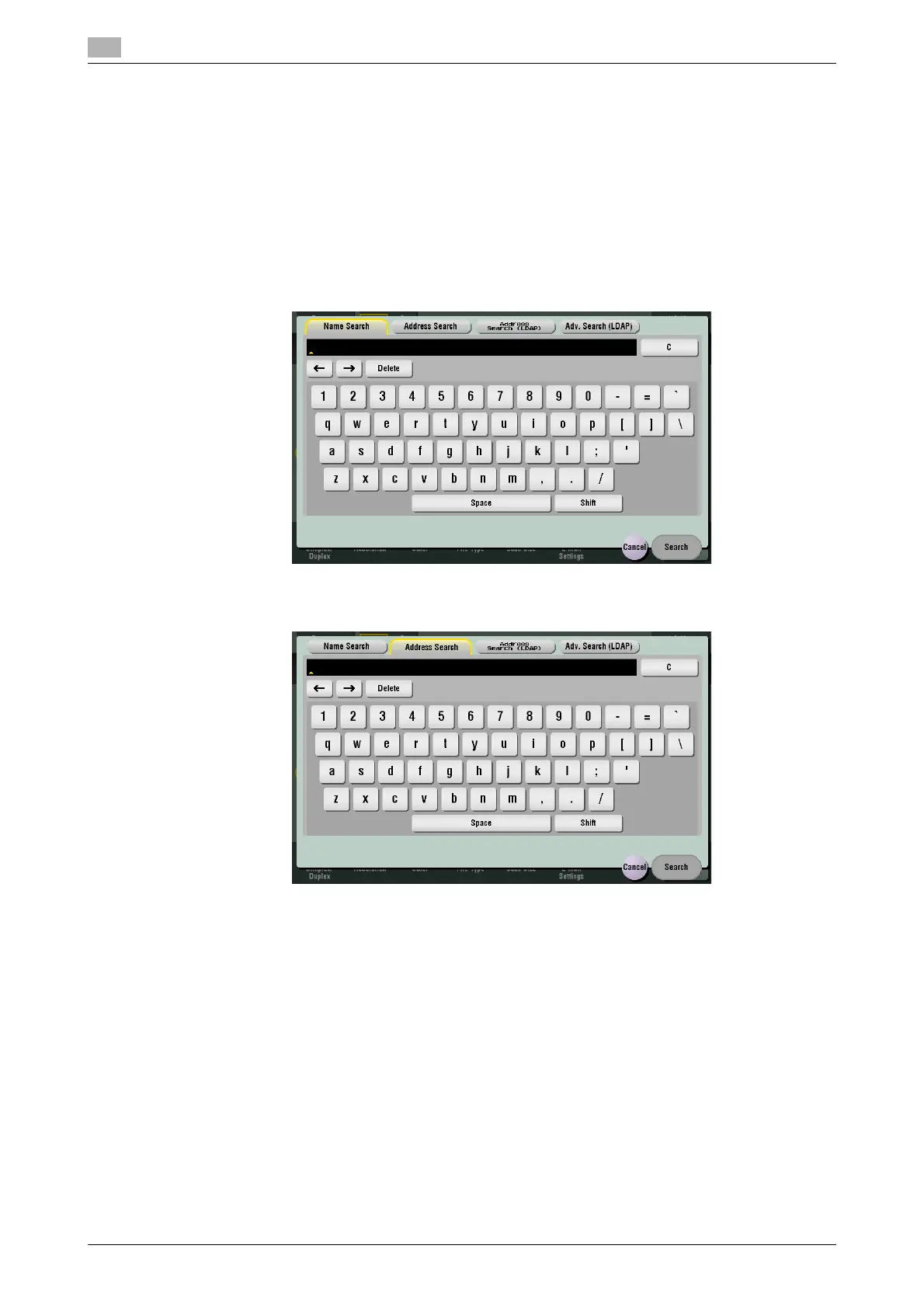 % When you search for a destination by E-mail address or computer name, tap [Address Search].