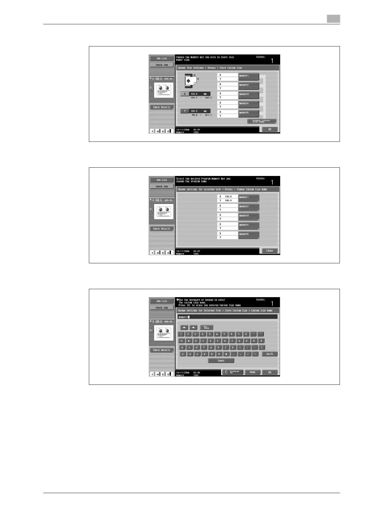 To change the name of a memory key, touch [Change Custom Size Name], and then touch the key