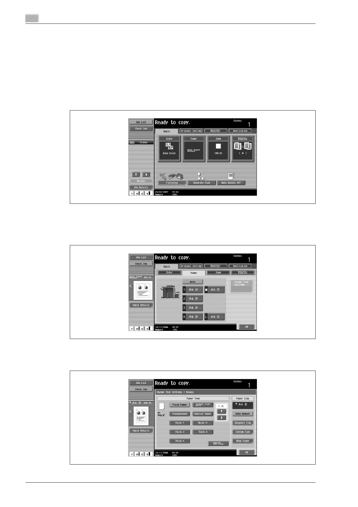 – To set the paper size for tray 1 or 2, touch the button for the corresponding paper tray.