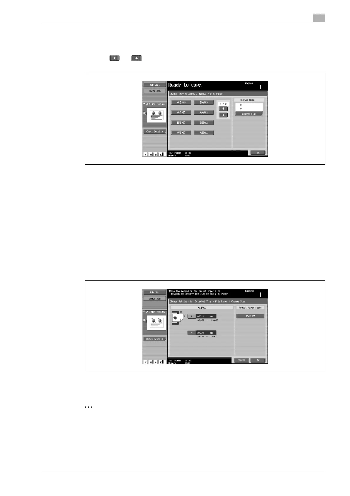 The selected size button is programmed with the entered paper size, so that the paper size is available