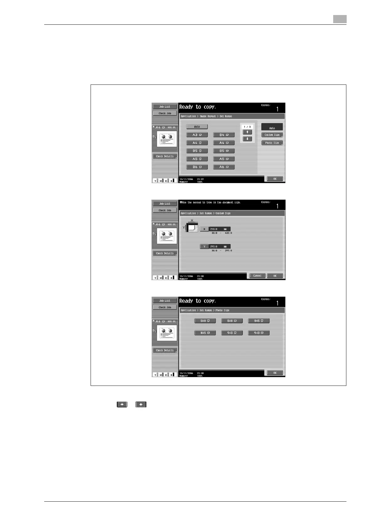 % Any size can be specified from the Custom Size screen. Touch [X] or [Y] to select the dimension,