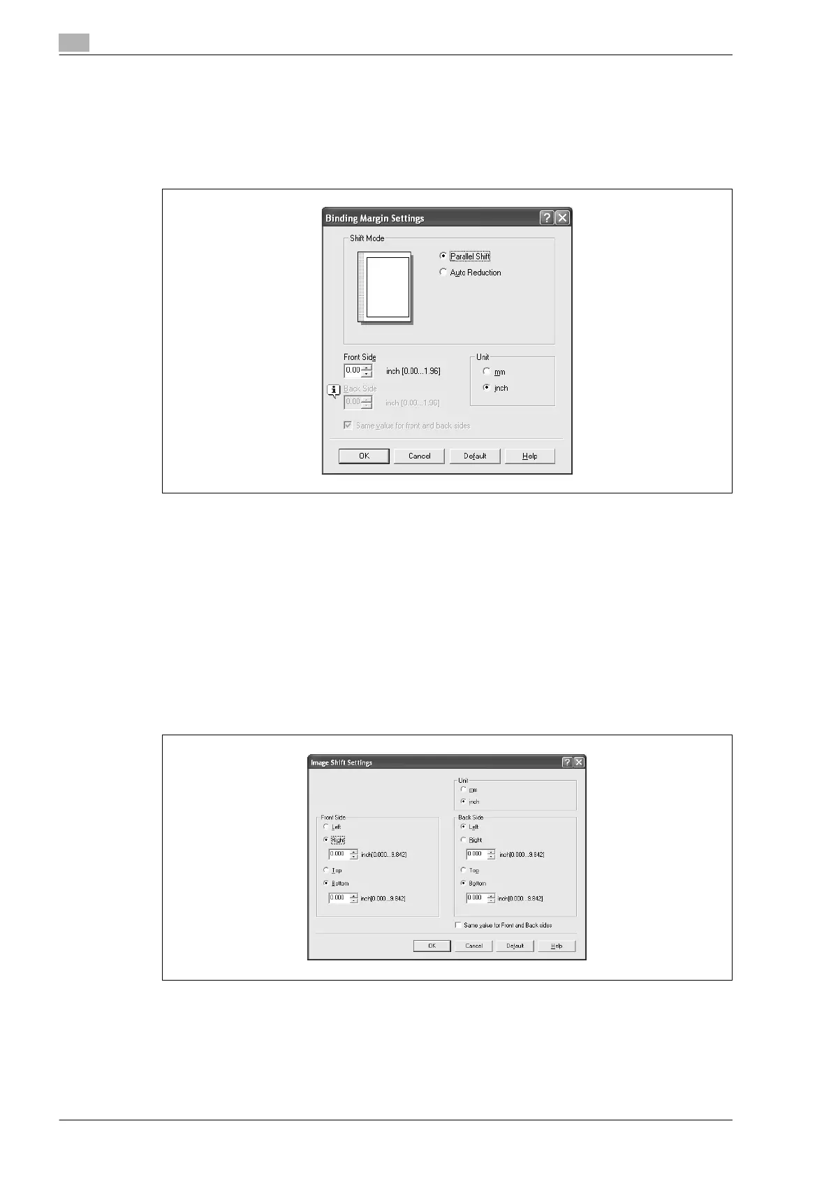 – Front Side/Back Side: Specifies the shift direction and sets the values. By clearing the "Same value