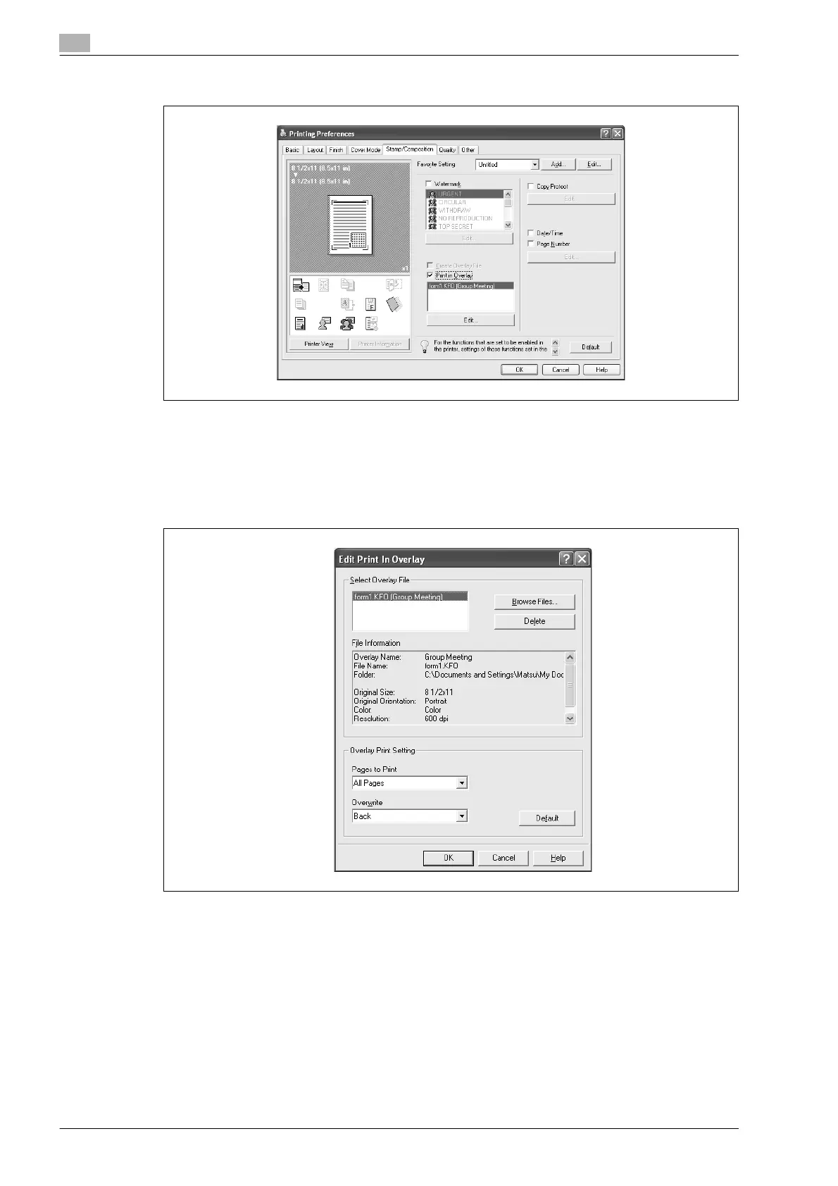 Overwrite: Specifies the sequence for printing the overlay on top of the original document.