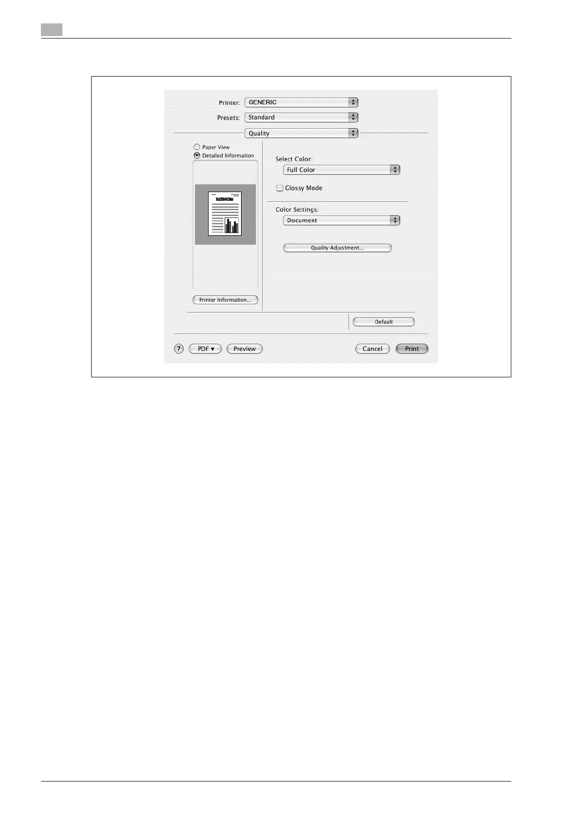 Quality Adjustment: Adjusts the image quality. Specifies the color matching and the profile for the text,