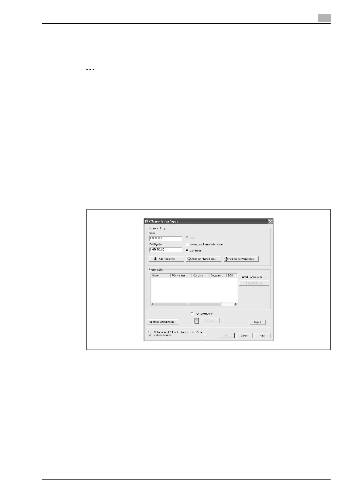 – For details, refer to "Specifying the transmission settings" on page 3-80, or "Creating a fax cover