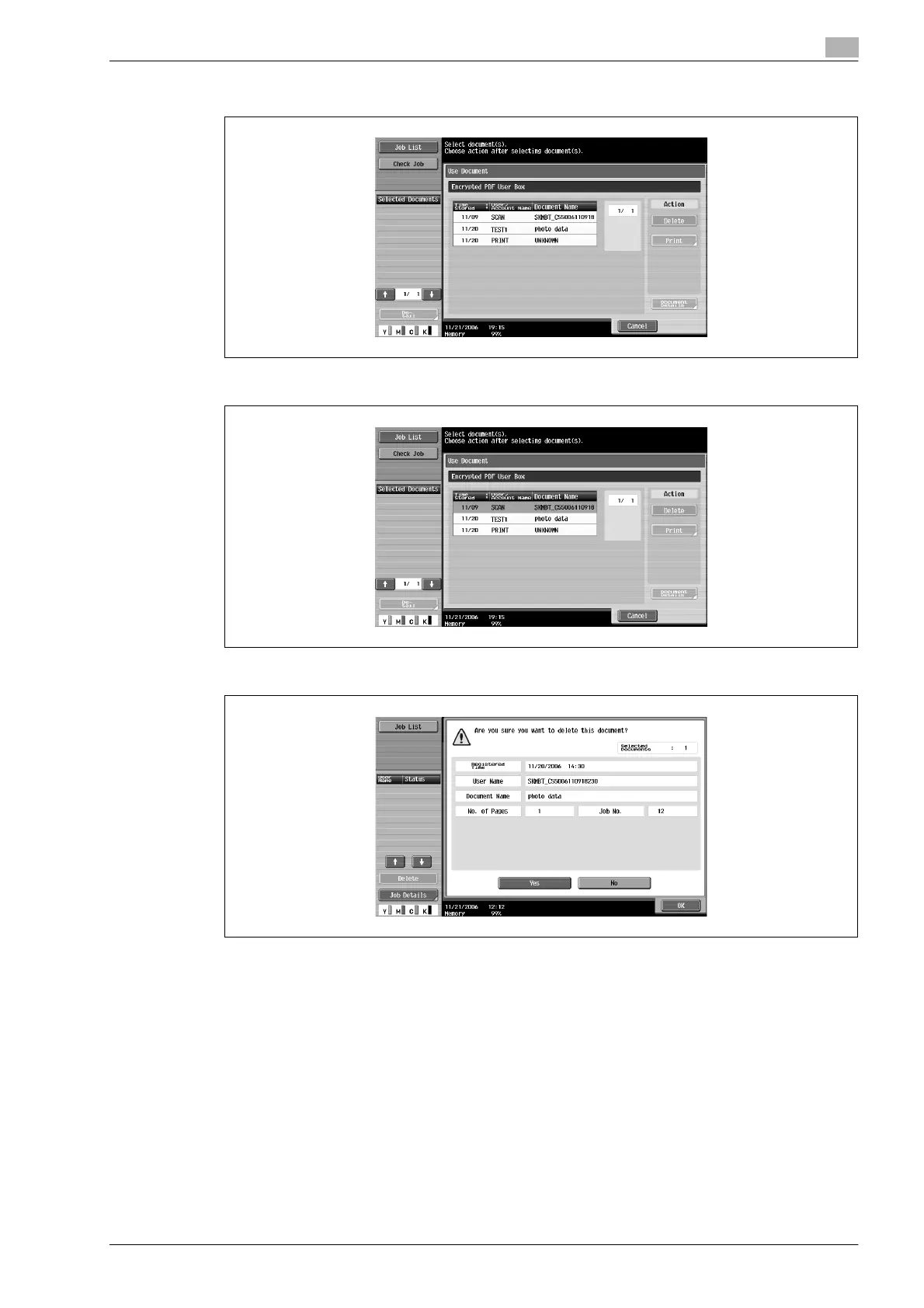 6 Check the message, touch [Yes] to delete the document, and then touch [OK].