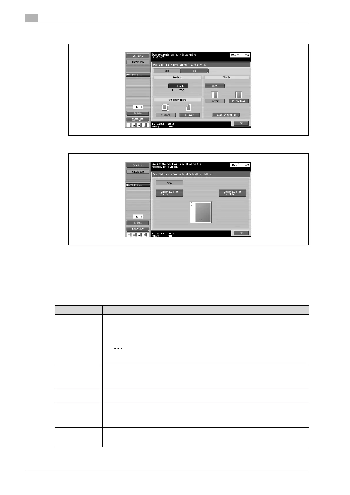 5 To select the staple position, touch [Corner] or [2 Positions], and then touch [Position Setting].