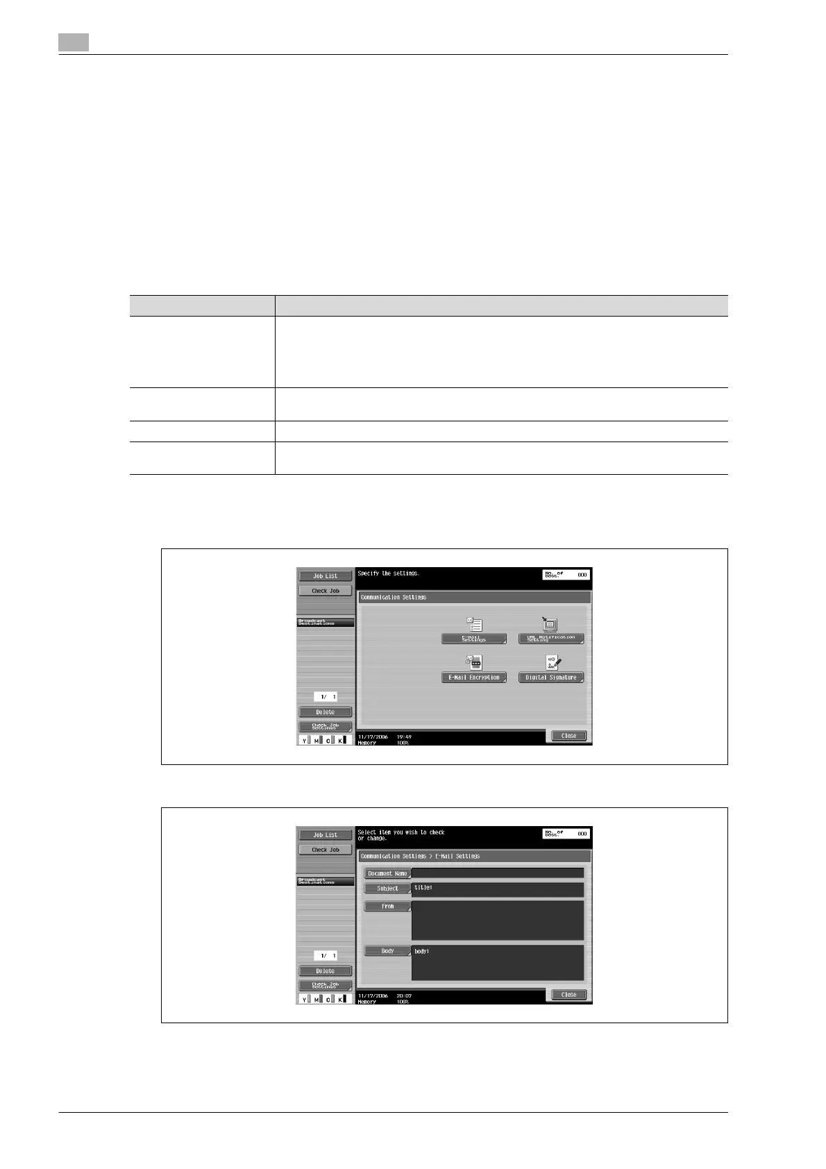 When data is sent, an e-mail message containing the document name can be sent to the specified e-mail