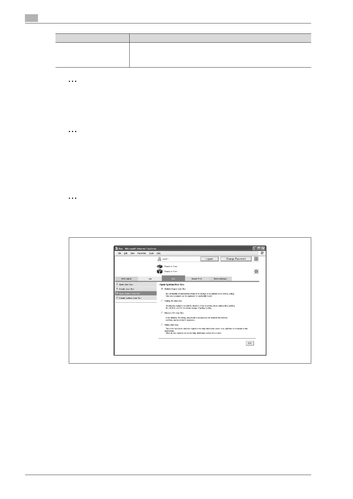 "Open System User Box" appears when the optional fax kit is installed. System user boxes (Bulletin Board