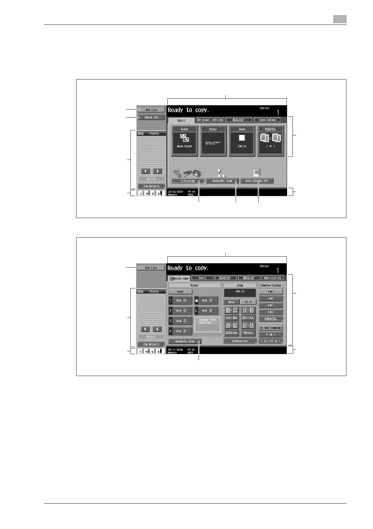 When the machine is ready to begin making copies after being turned on, the Basic screen appears.