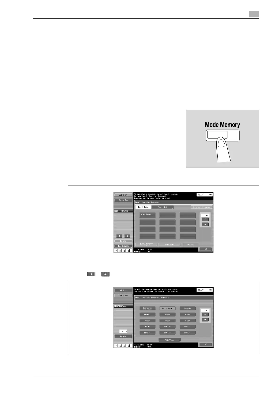 5 Touch the page button in which the desired program destination is registered, and then touch [OK].